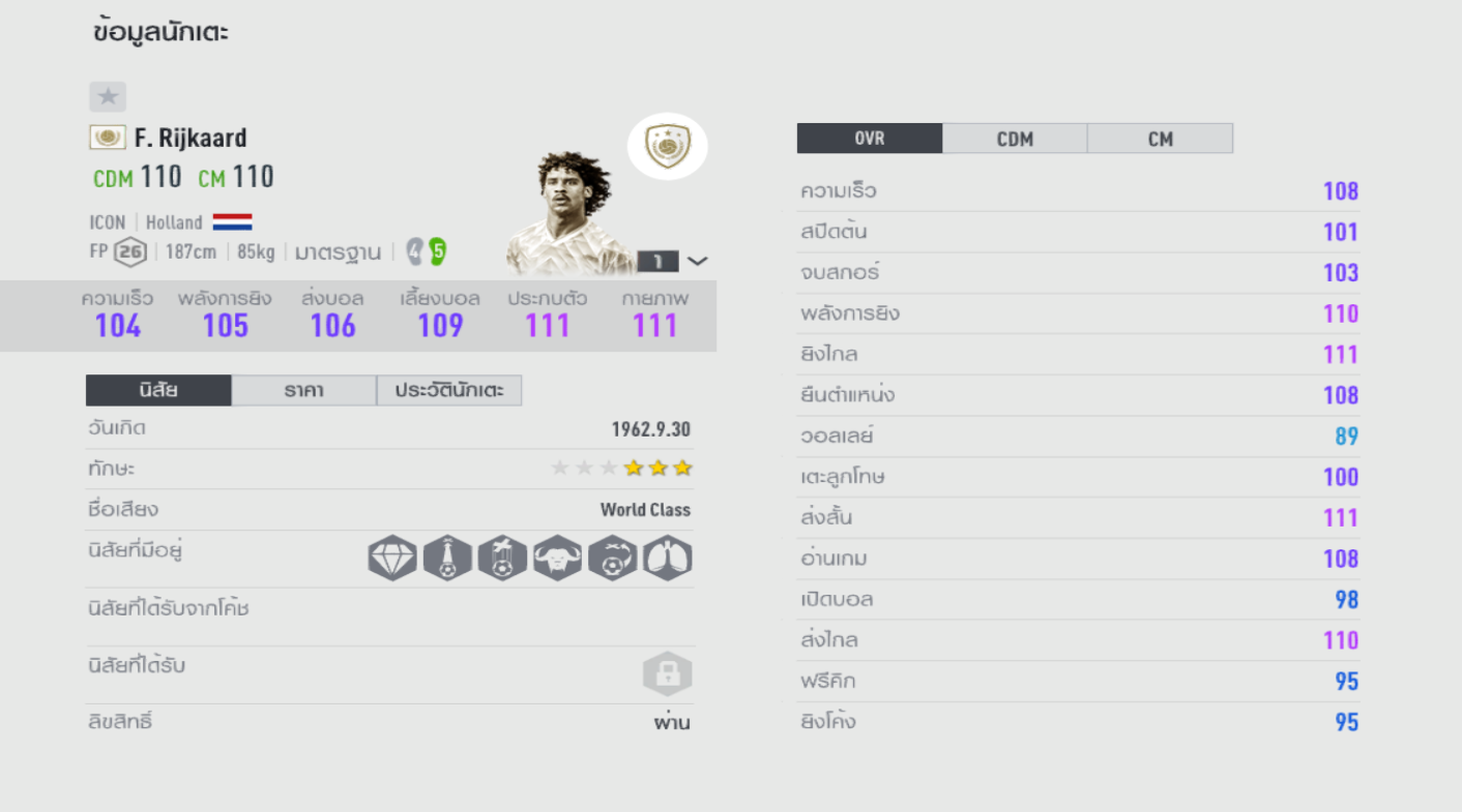 Chỉ số của Rijkaard ICON là cực kỳ đáng mong đợi, và có lẽ ông sẽ cùng với Gullit tiếp tục bán hành vào game.