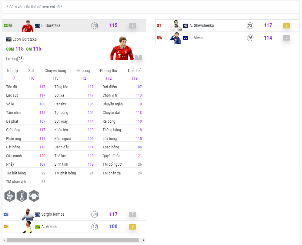 Ngoài ra thì shop cũng nhận săn cầu thủ hay chèn cầu thủ cho bất cứ ai có nhu cầu với mức kinh phí phải chăng. Bạn có thể tìm thấy theo list cầu thủ mà hiện shop đang sở hữu. Có một tính nắng rất hay là bạn chỉ cần click vào cầu thủ trên shop là có thể xem luôn chỉ số của cầu thủ đó. Không cần phải vào game để check thông số mức thẻ. Rất tiện lợi phải không