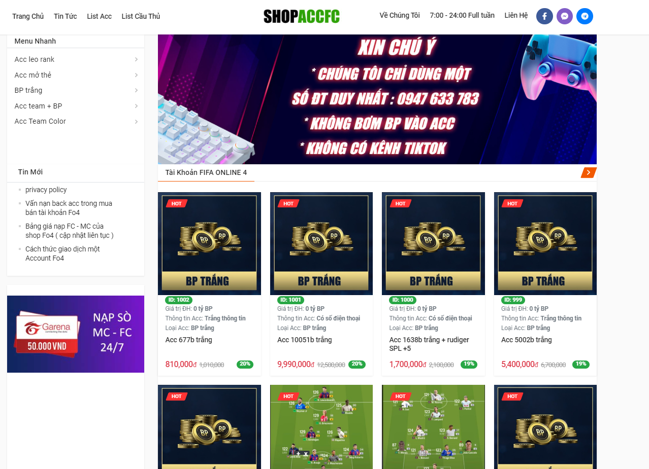 Từ account có đội hình team color đẹp hay những acc có lượng BP trắng với option ưa thích " trắng thông tin " sẽ là những sản phẩm mà có thể làm bạn hài lòng. Hiện tại Fo4shop đang khai trương và có chính sách giảm giá trên từng sản phẩm.