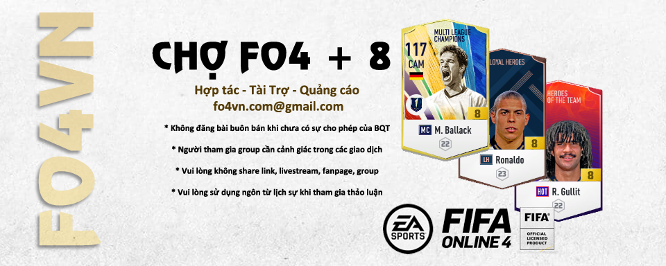 Nhằm để tạo một không gian chuyên biệt để các bạn có thể tìm và sưu tầm những cầu thủ + 8 dành cho đội hình của mình. Fo4vn xin giới thiệu với các bạn một group do chúng tôi lập ra nhằm tạo sân chơi riêng cho các bạn
