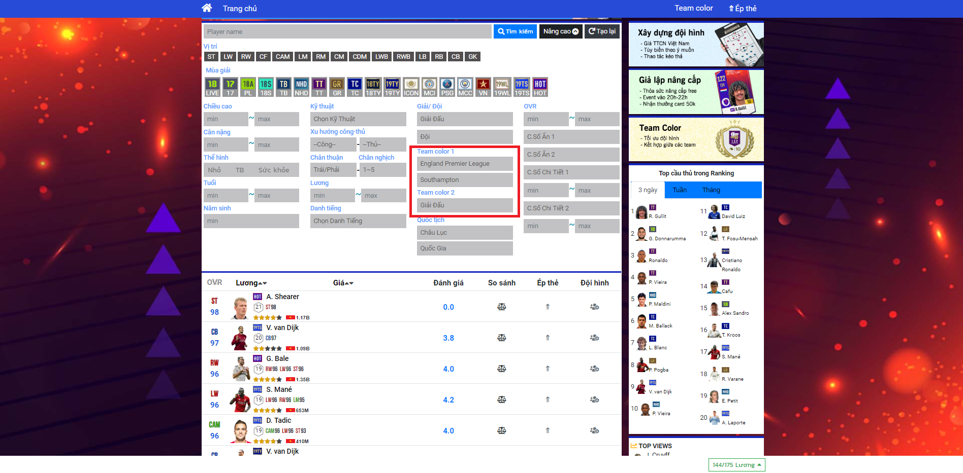 Ngoài ra, thời gian gần đây, chuyên mục xây dựng team color cũng đang được rất nhiều bạn quan tâm. Người chơi FIFA Online 4 luôn muốn tìm kiếm những team color độc, dị, lạ những lại vẫn có đủ chất lượng đội hình cần thiết.