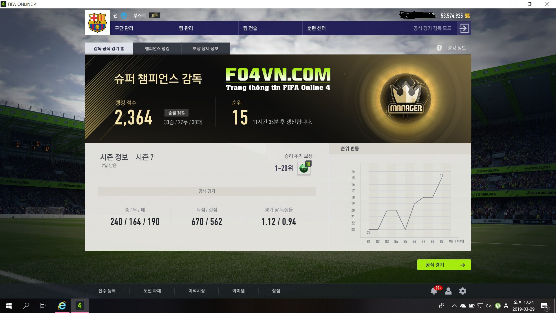 Mới đây, bên Server Hàn Quốc đã có người leo lên rank xếp hạng "Siêu vô địch" (Super Champion). Mức cao nhất của rank xếp hạng FIFA Online 4.