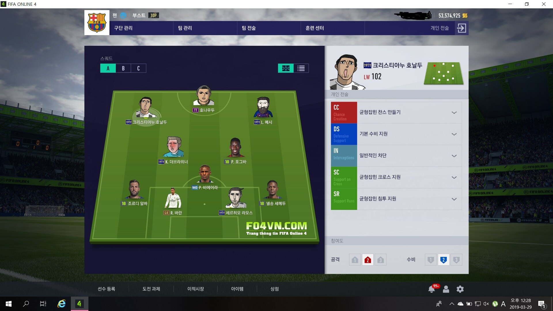 Tổng quát : Tốc độ chơi 91 cùng mức chuyền 54 nhằm giúp những tình huống di chuyển và chơi bóng trên sân có tốc độ cao tạo sức ép lên đối thủ. Lối chơi tự do để các cầu thủ di chuyển đa dạng.