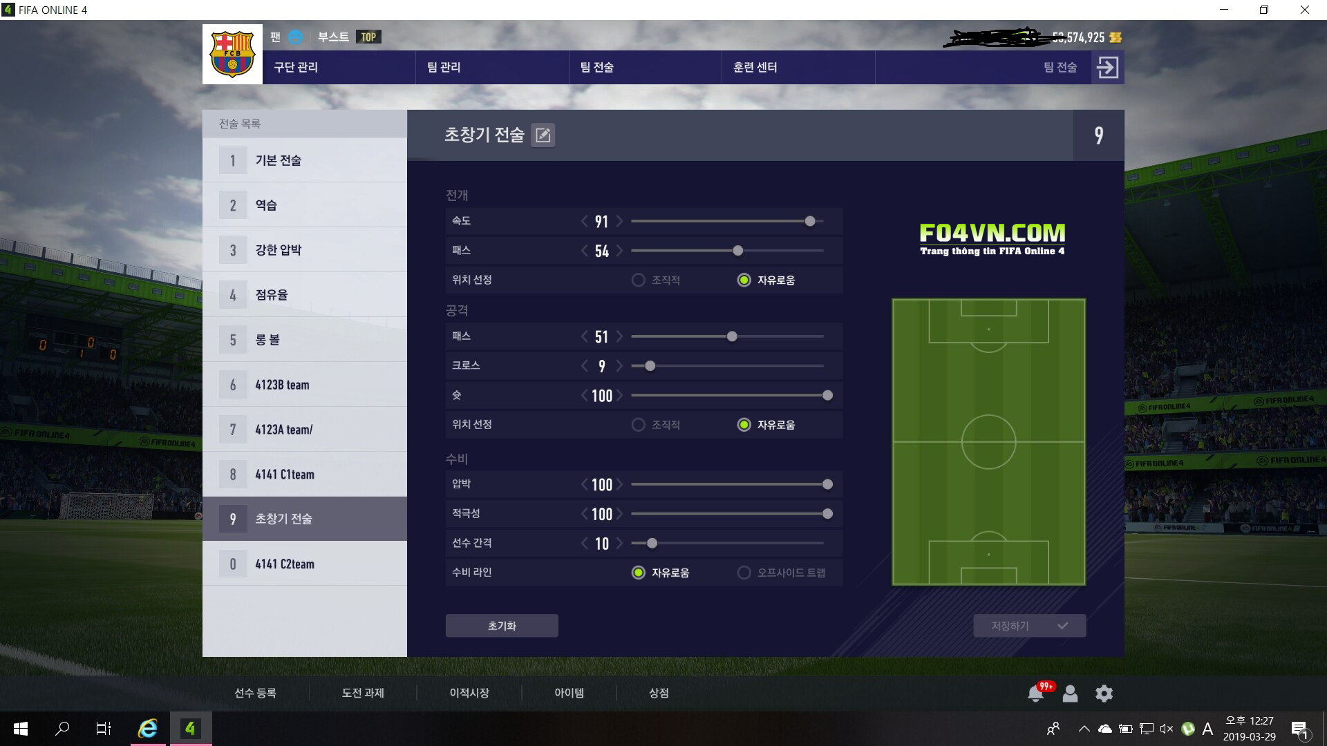 Tấn công : Chuyền 51 giúp các vị trí di chuyển nhận bóng tích cực mỗi khi phát động tấn công bên phần sân đối phương. Tạt 9 nhằm hướng những đường tạt đến với các cọc gần. Sút 100 hỗ trợ tích cực cho các tiền vệ và tiền đạo cánh ZD và sút xa ở phạm vi ngoài vòng cấm. Xu hướng chơi là tự do.