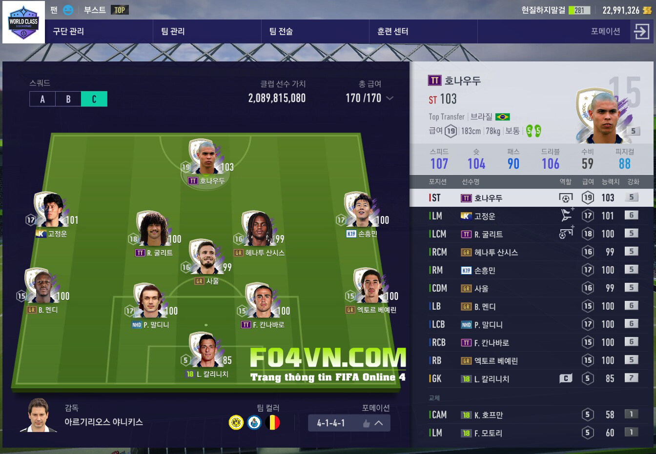 Sơ đồ chiến thuật được để mặc định theo sơ đồ 4-1-4-1 như hình bên dưới. Ngoài ra không có bất kì thay đổi vị trí nào của các cầu thủ.