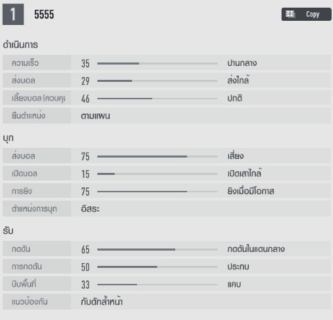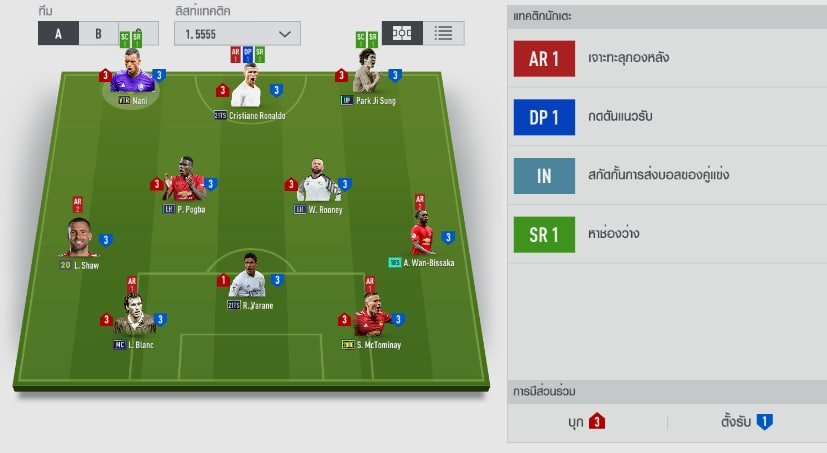 Lối chơi : tổ chức - Tấn công : Tự do - Phòng ngự : Bẫy việt vị