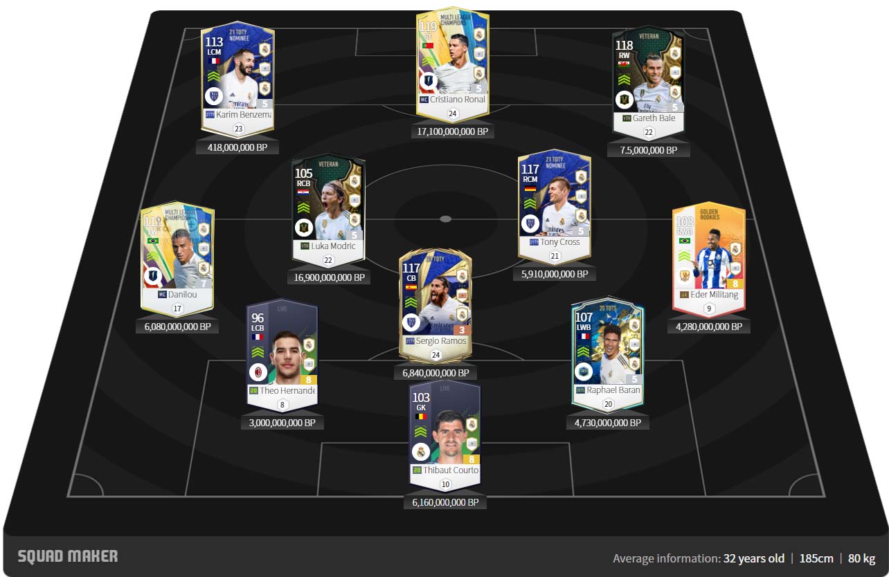Đây là sơ đồ với những cái tên xuất sắc nhất của Real trong tựa game hiện tại. Tất nhiên với vị trí của Modrid, nếu các bạn lo ngại thể hình của anh, thì có thể sử dụng một cái tên khác là Khedira LH