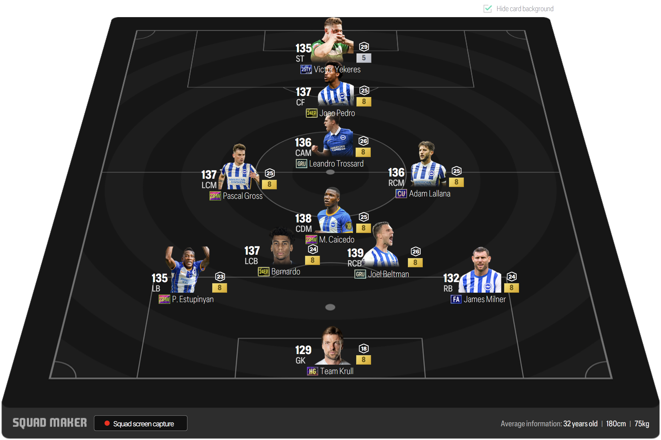 Với tốc độ, thể lực tốt và khả năng phối hợp mượt mà, Brighton là lựa chọn thú vị cho những ai muốn thử sức với một đội bóng tầm trung nhưng vẫn có thể cạnh tranh sòng phẳng trong FC Online. Những mùa thẻ đương đại chất lượng trong game sẽ giúp Brighton có thêm chiều sâu và sức mạnh đội hình.