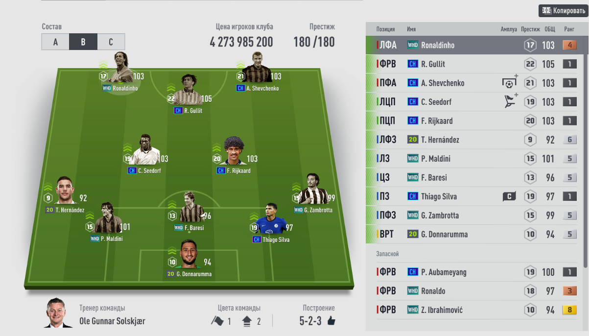 Một đội hình GLXH với team color Ac Milan dành cho những bạn đam mê bộ môn làm HLV trưởng. Do sever Nga chưa có những mùa giải khác ngoài HOT và NHD. Nên đội hình so với mức lương và giá tiền ở VN là khá rẻ. Mời các bạn tham khảo