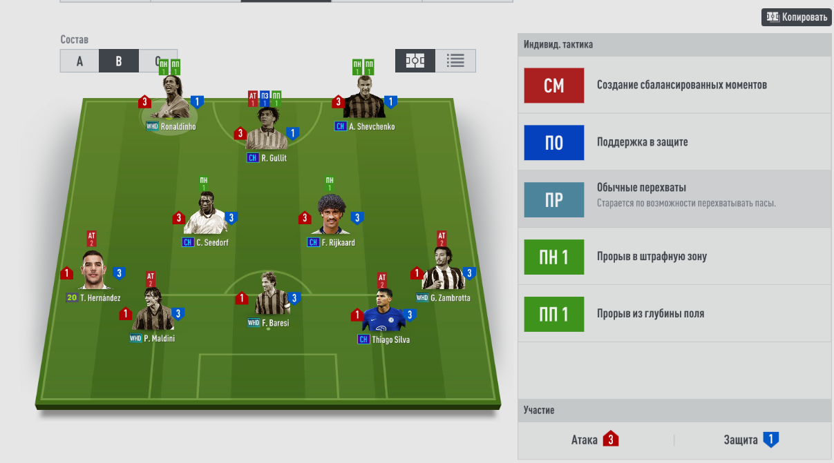 Trong đội hình các bạn có thể thấy HLV này sử dụng cả Franco Baresi NHD. Và không quên có cả Theo Heznandez 20Live "thần thánh"