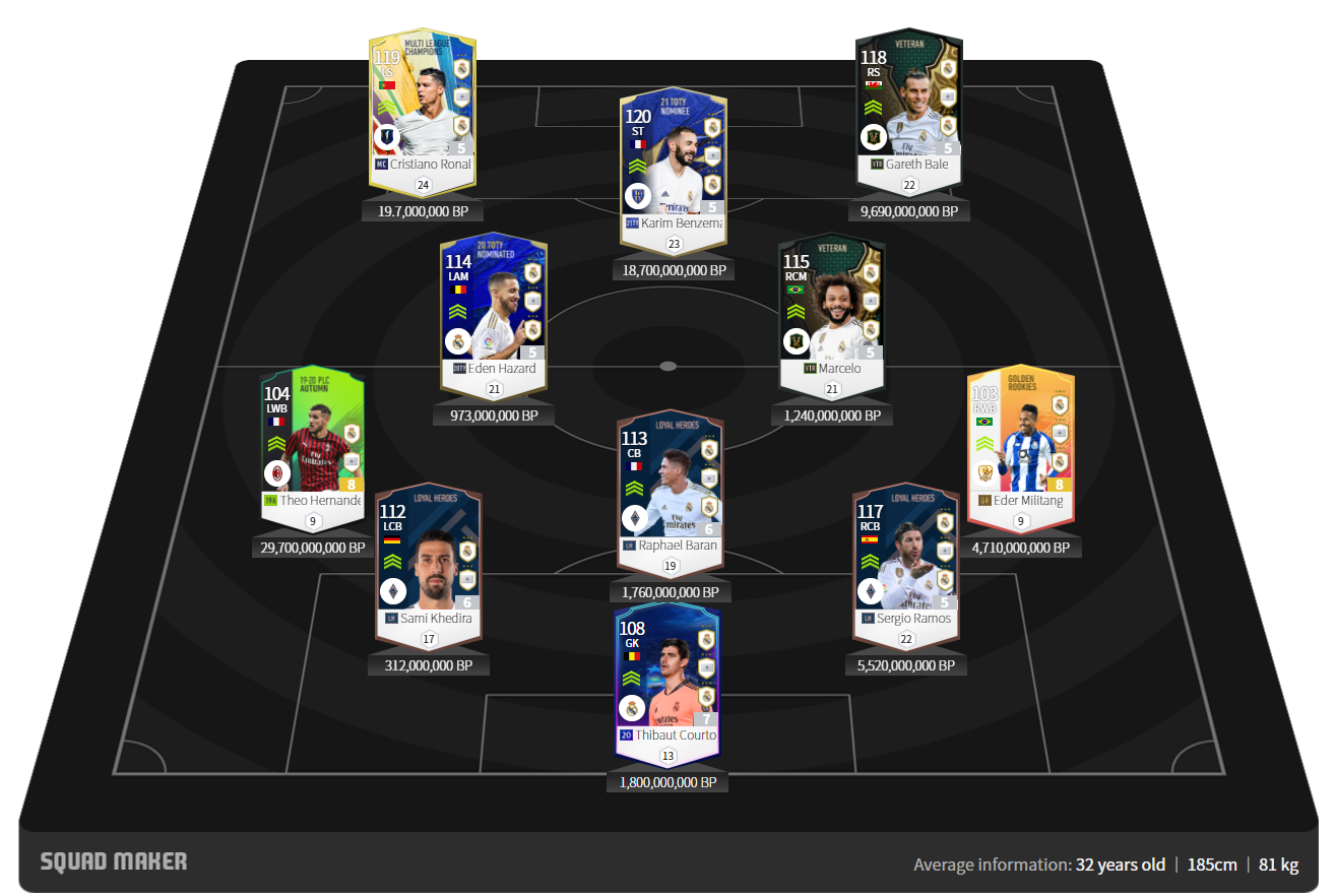 Nhìn qua các bạn cũng nhận ra bộ khung ở hàng hậu vệ. Phía trên khác biệt nằm ở việc kéo Marcelo và Hazard vào đá trung tâm. Tuy nhiên cả hai đầu chơi tốt hai chân và có skill sút xa má ngoài.