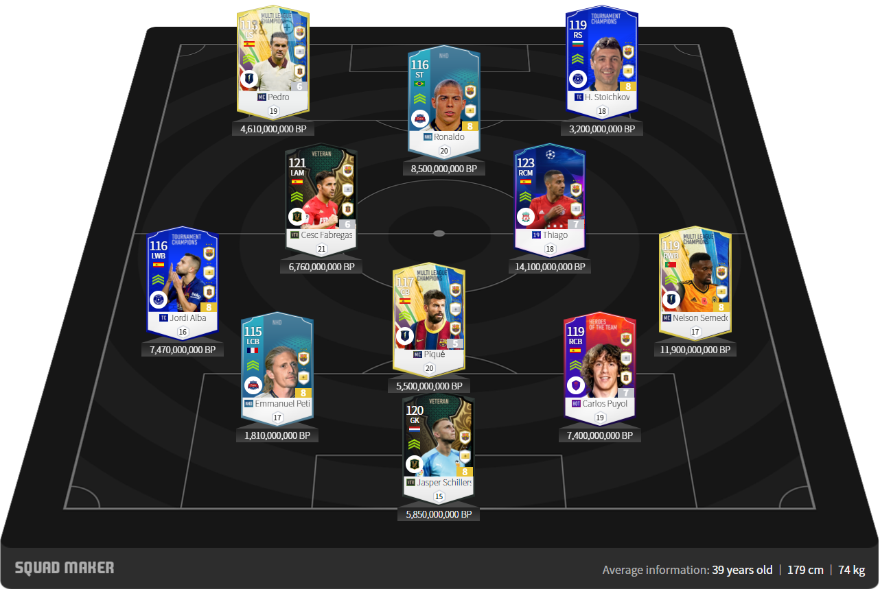 Nhìn vào thông số về chiều cao và cân nặng trung bình có thể hiểu tại sao team Barca luôn bị neft vế trong xếp hạng 1vs1