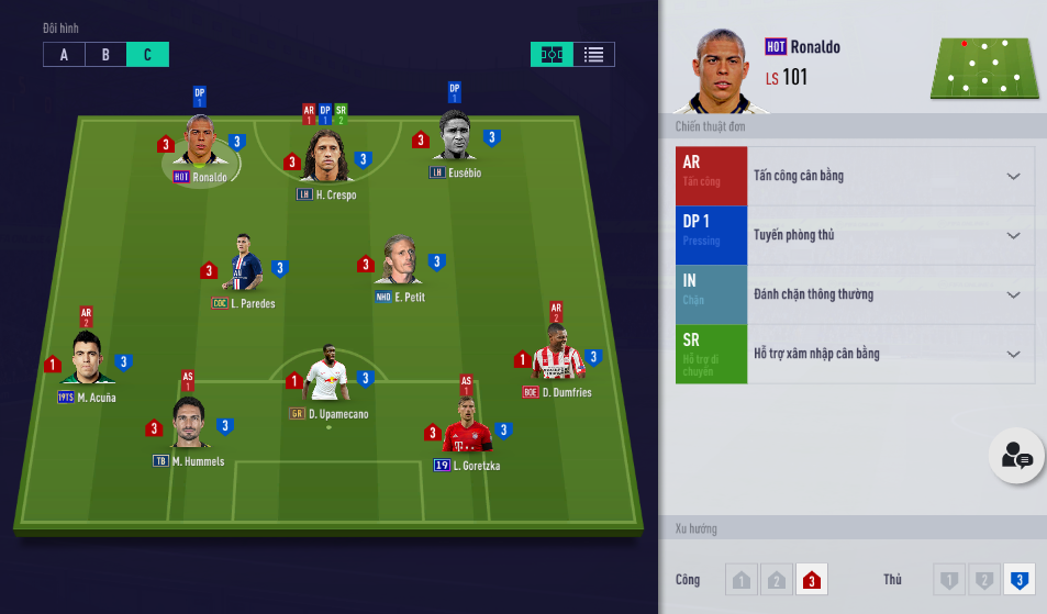 Mùa TC đã ra mắt 3 năm nhưng giá trị sử dụng trong ranking 1vs1 gần như rất hạn chế. Tuy nhiên trong GLXH thì lại là một câu chuyện khác. Mời các bạn đến với team TC với sơ đồ 523