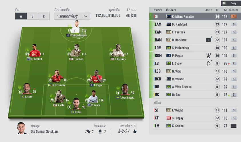 4-2-3-1 là sơ đồ dễ chơi dễ tấn công và làm chủ trận đấu với bất kỳ HLV nào. Và nó đang là sơ đồ được phần lớn các HLV Thái Lan lựa chọn. Hãy cùng đến với team Manchester United với 4231 rank siêu sao dưới đây