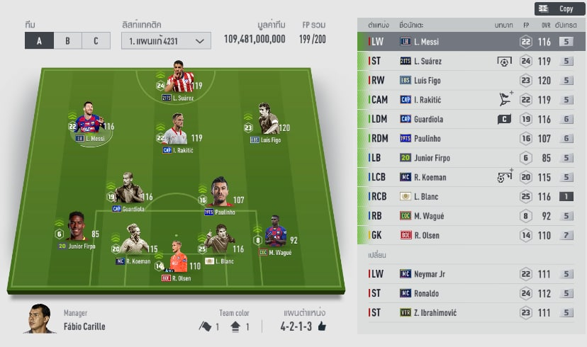 Nhìn đội hình này có lẽ sẽ không hề khó để bất cứ người chơi nào có thể hữu. Chỉ với các cầu thủ ở mức thẻ + 5 nhưng đã đủ để HLV của đội hình này leo lên rank siêu sao