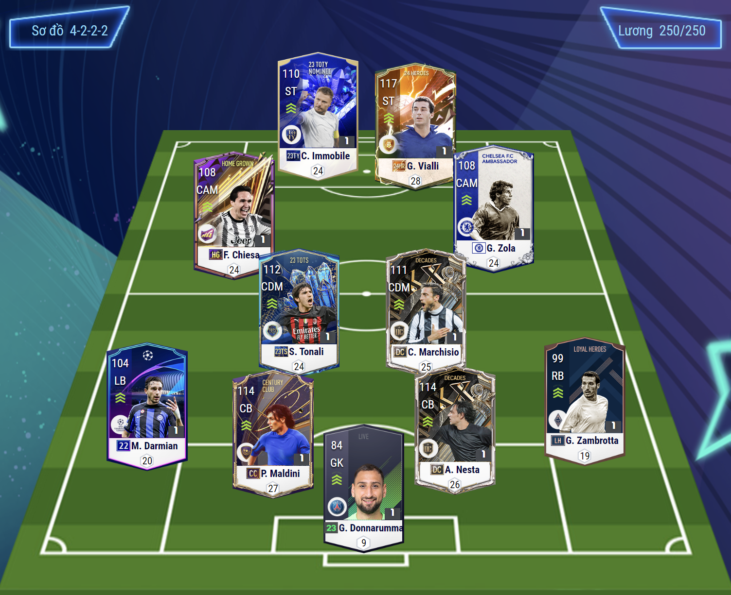 Cái tên tiếp theo chính là team color của Ý. Đội tuyển vốn không được đánh giá quá cao về giá trị sử dụng dù có cho mình hàng thủ chất lượng nhưng lại chưa thực sự thỏa mãn người dùng vì thiếu đi những tiền vệ trung tâm chất lượng và một tiền đạo thực sự sắc bén và hiệu quả.