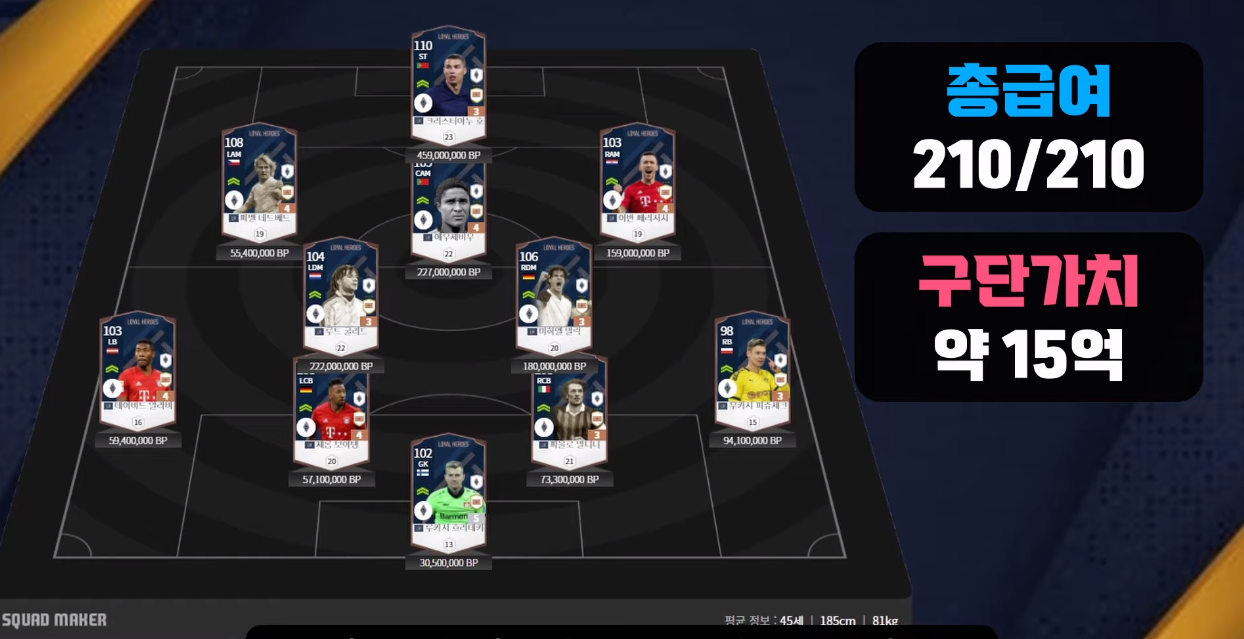 Mức lương 210 giúp cho team color này được hoàn thành với số cầu thủ 11/11 mùa LH. Bạn có thể thể thay đổi vị trí thủ môn hoặc trung vệ nếu muốn. Hiện tại những vị trí còn lại theo đánh giá của cá nhân người viết bài thì nó quả thức là an toàn và tốt nhất cho người sử dụng