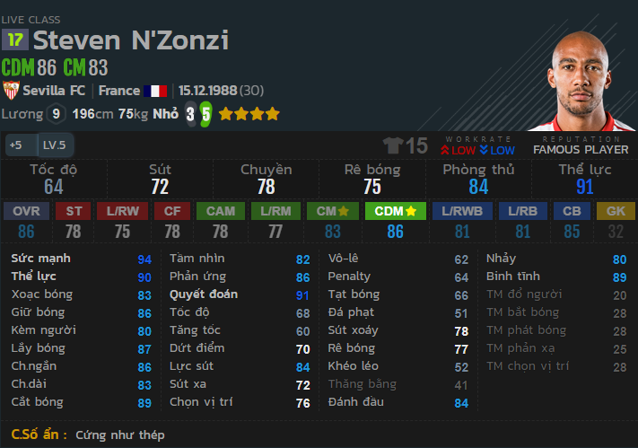 Workrate 1-2, hay lùi về giữa sân, rất khó đá.