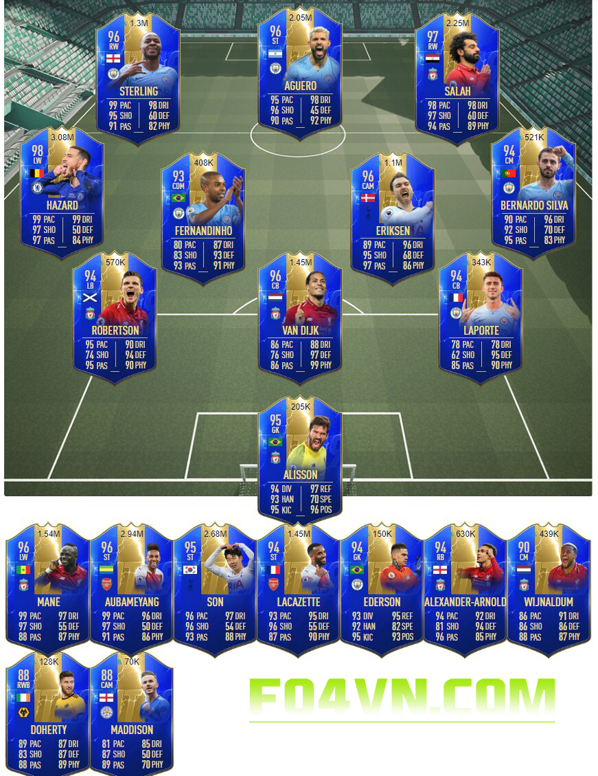 Thẻ cầu thủ TOTS (Team of the Season) là thẻ của các cầu thủ xuất sắc nhất ở 7 giải đấu lớn khác nhau trong mùa giải 2018-2019. 7 giải đấu lớn bao gồm : EPL, La liga, Serie A, Bundesliga, Ligue 1, Everdivisie và liga NOS,