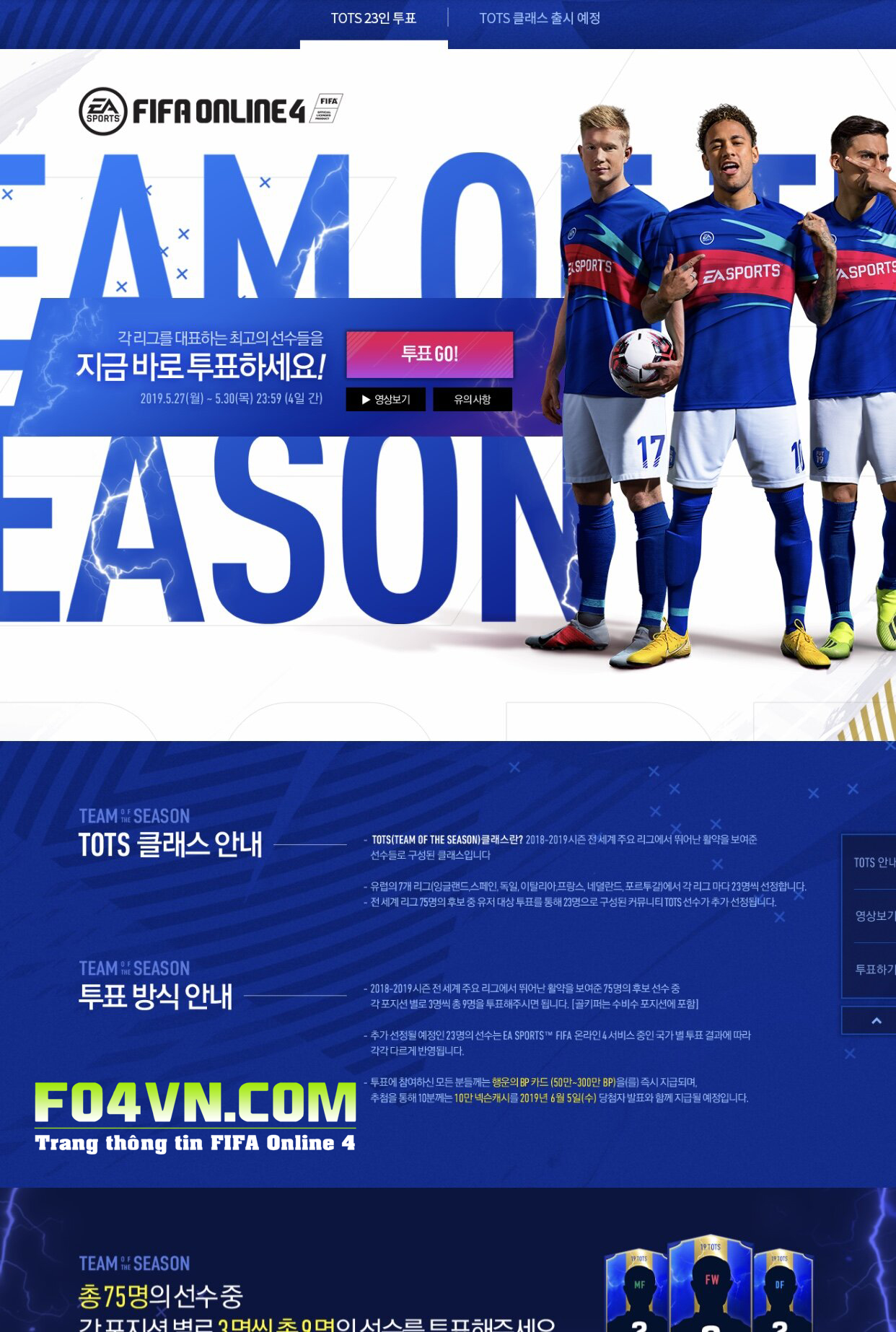 Mới đây, trang chủ của Hàn Quốc đăng tải một video hé lộ việc ra mắt mùa giải mới trong thời gian sắp tới đó là mùa giải Team of the Season. Không chỉ có vậy, FIFA Hàn Quốc còn trích dẫn 2 đường link vote cầu thủ cho điện thoại và máy tính.