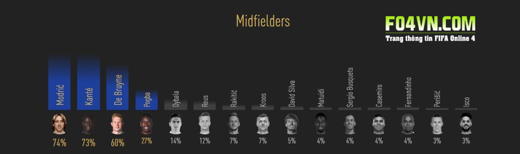Với phong độ chồi sụt trong nửa mùa giải 2017-2018. Pogba đã bị lại rất xa trong cuộc bình chọn khi chỉ nhận được số bình chọn là 27%. Ngược lại Modric có 1 năm đại thành công, trong vai trò nhạc trường, còn Kante anh hoàn toàn xứng đáng với một chức vô địch WC, thêm vào đó lối chơi và vẻ ngoài hiền lành của anh gây được cảm tình rất lớn với người hâm mộ. Kevin Bruyne cũng có 1 năm thành công với đội tuyển Bỉ và CLB Manchester City