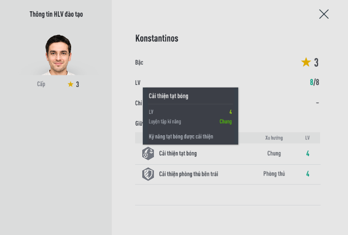 có thể thấy trên ghi chú có đề tác dụng : Kỹ năng tạt bóng được cải thiện. Mà tạt bóng bằng phím A có 3 kiểu là A, AA và AAA. các bạn có thể xem tình huống sau