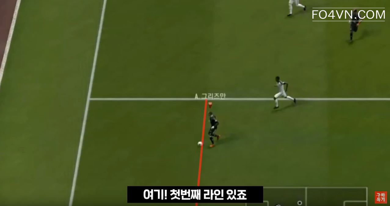- Đưa bóng đến vạch ngăn cách 2 màu cỏ trên sân (hình 1) sau đó thực hiện đường tạt. Lưu ý càng sát vạch càng tốt.