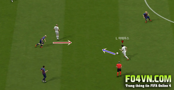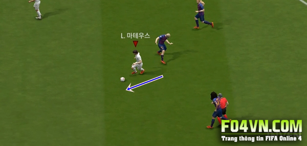 Bước 2 : Rê bóng về hướng quay lưng của đối thủ