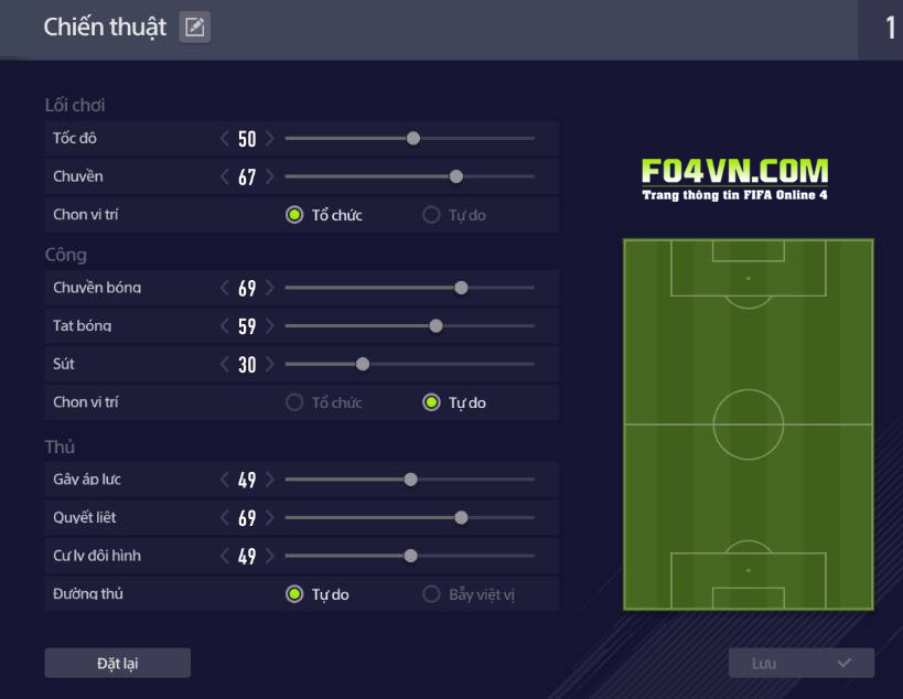 Gameplay trước mình thấy nhà nhà người người chọn chiến thuật đơn "phòng ngự bị động", nhưng mình đã thử và cảm giác cầu thủ không lao vào tranh cướp bóng. Mình để phòng ngự chủ động và tăng thêm một chút quyết liệt, kết quả là rất ấn tượng.