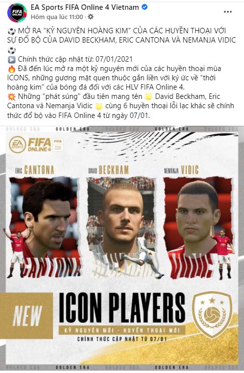 Mới đây Fo4 Thái Lan đã công bố các ICON sẽ xuất hiện tại sever trong đợt update ngày 7.1.2021. Đáng chú ý trong đó có những cái tên rất hot như Torres, Beckham, Vidic,... Tổng cộng là 14 ICON sẽ được Garena Thái Lan gửi đến tay các game thủ nước này. Nhưng lại không có cái tên Eric Catona.