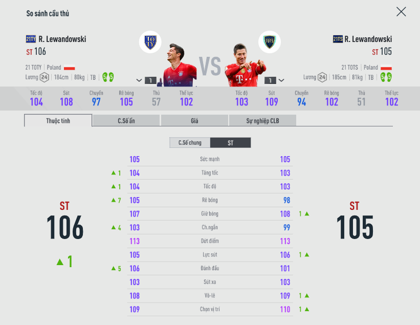 Tiền đạo người Ba Lan đang làm cầu thủ đè bẹp mọi meta khi anh luôn có tên trong top những cái tên dứt điểm sắc bén nhất game. Với việc ra mắt mùa giải 21TS với mức lương tương đương 21TY. Nhưng chỉ số giảm đi 1 đơn vị. Trong khi chỉ số thể hình lại tốt hơn thì liệu có cần đổi từ 21TY sang 21TS hay không ? Mời các bạn theo dõi bài viết