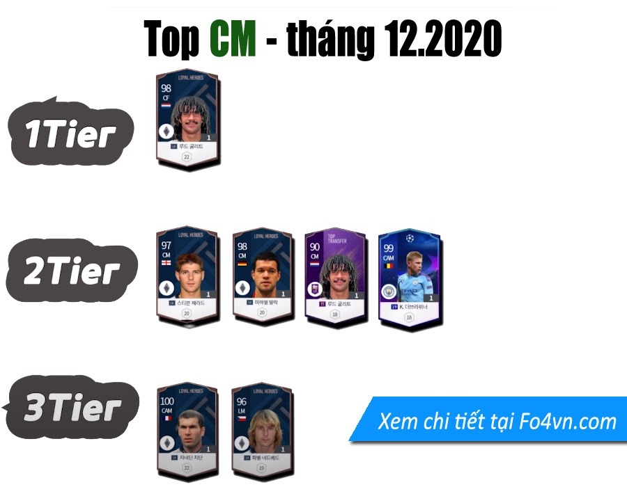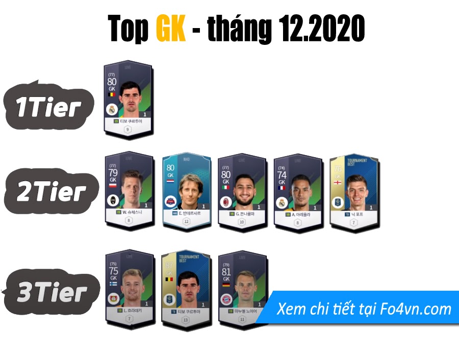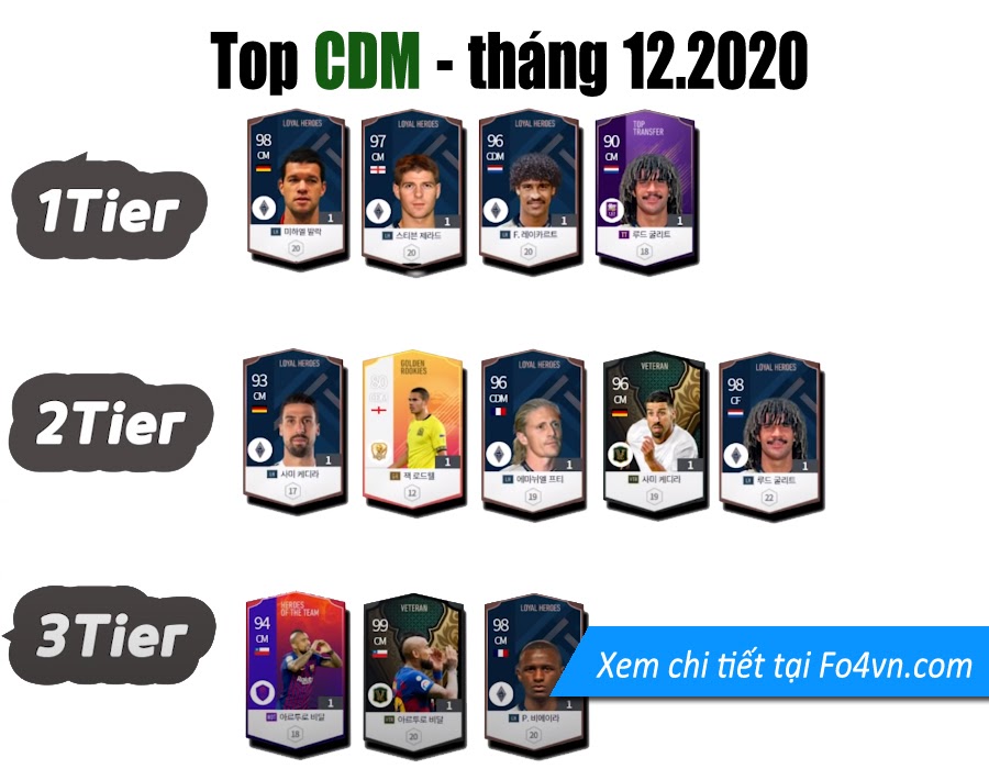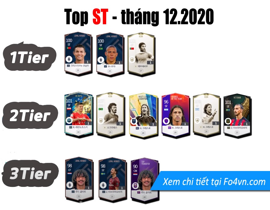 FO4VN xin được giới thiệu đến các bạn danh sách những sự lựa chọn tốt nhất cho từng vị trí, được chia làm 3 cấp độ. Tất nhiên đây chỉ là sự đánh giá mang tính tương đối tại sever Hàn Quốc. Dù giữa sever Việt và Hàn có lối chơi khác nhau, nhưng hi vọng đây sẽ là một tư liệu cho các bạn tham khảo và lựa chọn cầu thủ.