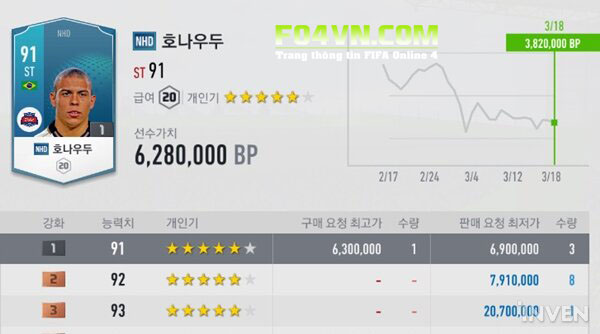 Với việc Fix ZD, fix sút xa và tăng yêu cầu kĩ năng phòng ngự và kết hợp với update thay đổi GK LB và RB, thì giá các cầu thủ Bên Hàn đã có thay đổi. NHỮNG Ronaldo Ronaldinho Messi Neymar bỗng thành hàng hót và luôn teong cảnh nóng hàng. Ngược lại các cầu thủ được dùng nhiều như Mojica lukaku thì lại rớt giá thảm hại và tràn lan.