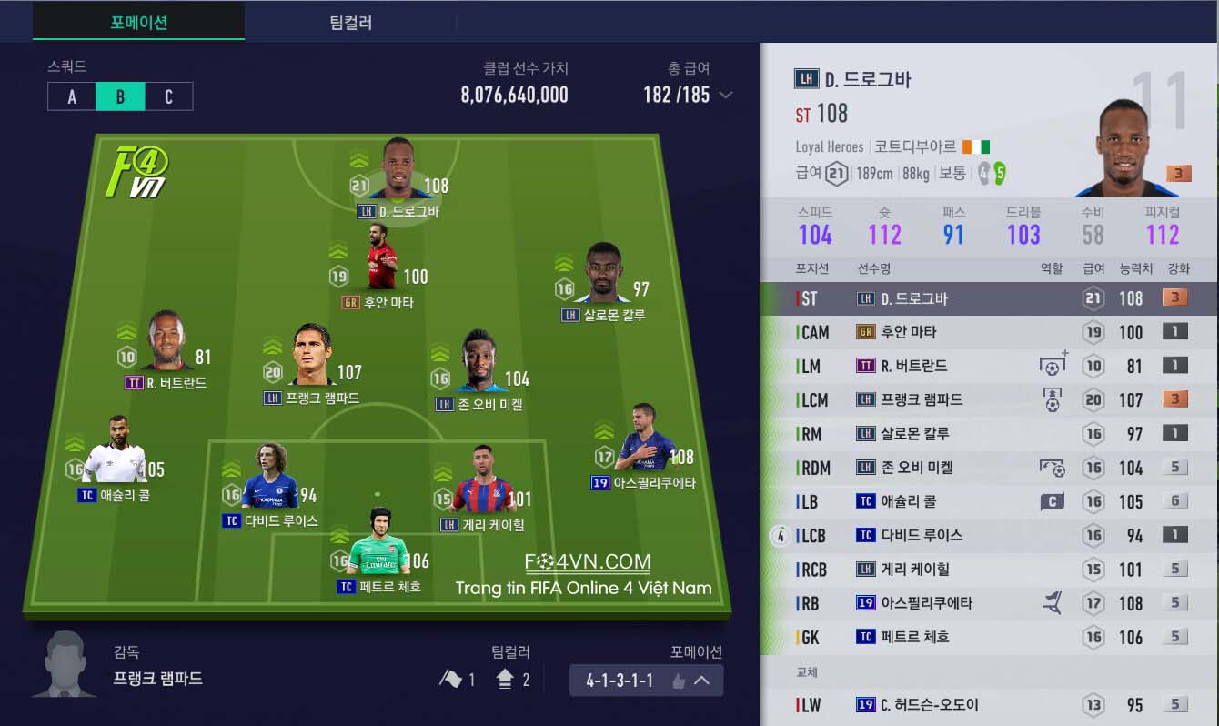 Trong đội hình này chúng ta không có sự phụ vụ của Bosingwa. Do hậu vệ người Bồ Đào Nha không có trong game. Đây là một điều khá tiếc nuối với các fan Chelsea và FO4. Bởi trong Fo3 thì Bosingwa E8 là một trong những RB hay nhất game.