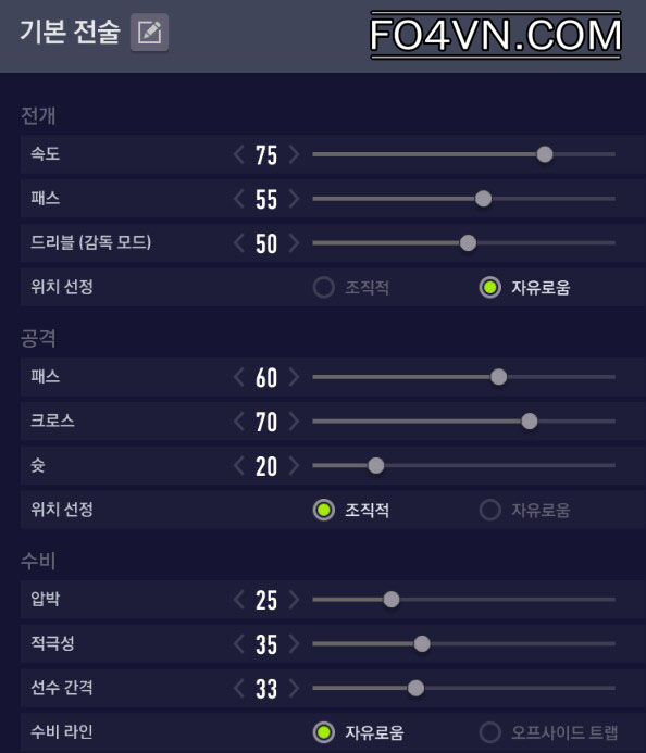 Sơ đồ chiến thuật và thiết lập cầu thủ
