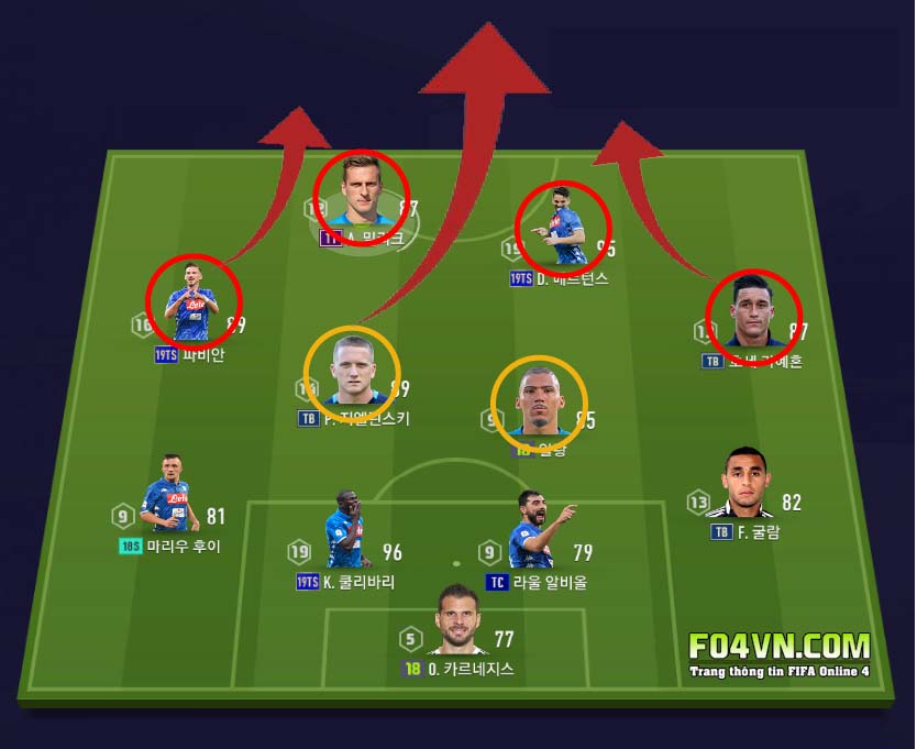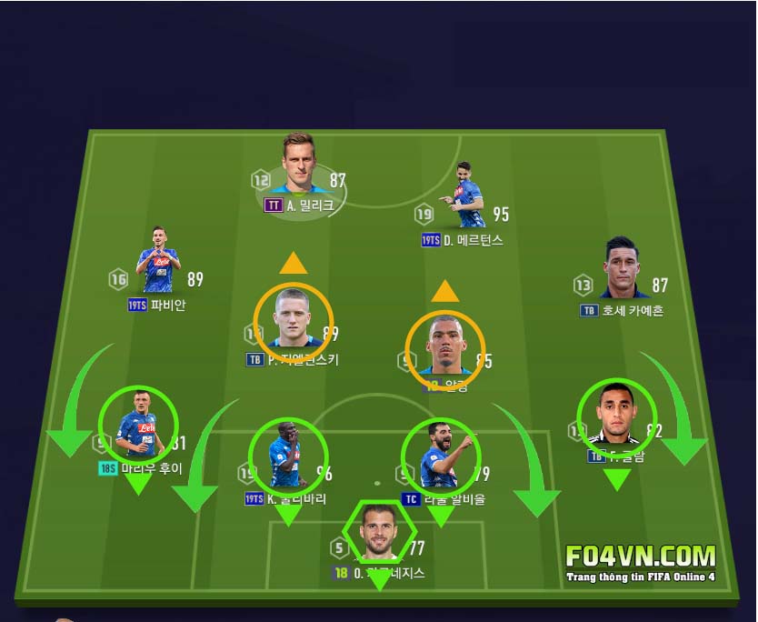 CLB Napoli nổi lên mạnh mẽ trong những năm gần đây với sự cạnh tranh quyết liệt ngôi vị quán quân Serri A. Khi mà nhóm 7 chị em gần như tan rã, Inter hụt hơi sau sự ra đi của Morrati, Ac thì vẫn không thể thoát ra bài toán về tiền bạc và nhân sự. Cuộc đua thiếu cân sức giữa Juvetus và Napoli phần nào cứu vớt một giải đấu đã bị lùi vào quên lãng. Ngày hôm nay Fo4vn xin gửi tới các bạn bài viết mô phỏng chiến thuật của CLB Napoli sau những bổ sung chất lượng từ mùa giải 19TS nơi họ có những cái tên cực chất lượng. Bài viết được mô phỏng sơ đồ 4-2-2-2 mà Napoli đã sử dụng trong trận thắng 4-1 trước Inter Milan tại Serria 2018-2019