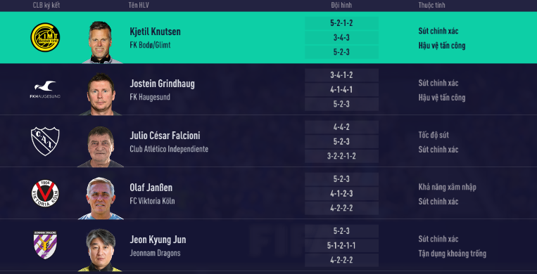 Trong đó 5 cái tên này thì Olaf Janben chính là cái tên được chọn mặt gửi vàng nhiều nhất khi hiệu ứng buff của vị HLV này là tăng khả năng xâm nhập, điều rất cần trong GLXH.