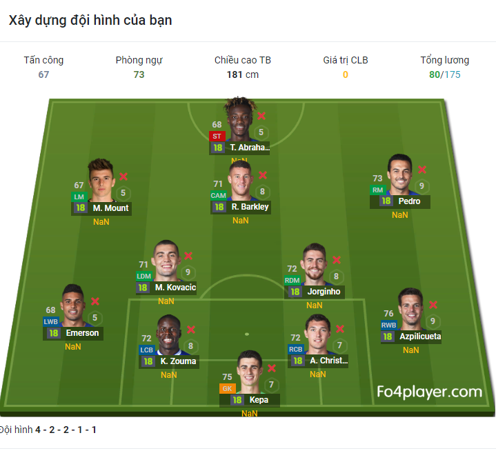 Chelsea: Kepa, Emerson, Christensen, Zouma, Azpilicueta, Kovacic, Jorginho, Mount, Barkley, Pedro, Abraham.