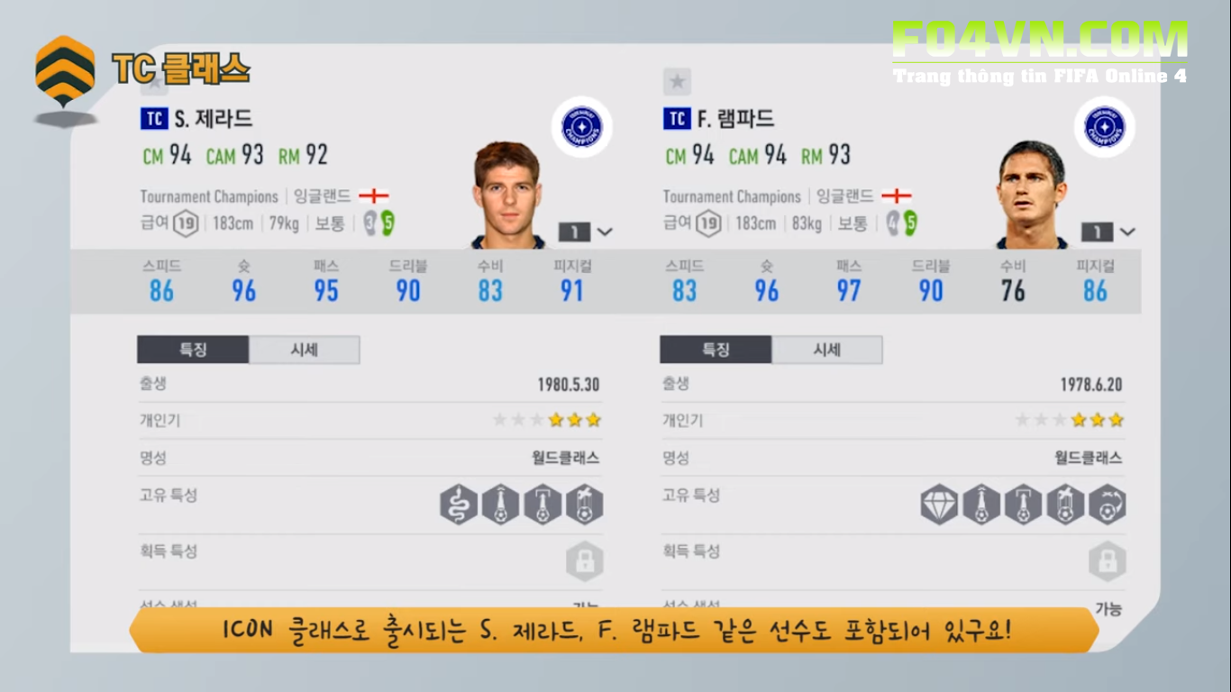 Không chỉ có vậy, điều được nhiều game thủ quan tâm lại nằm ở việc ra mắt thêm thẻ mùa giải Tournament Champions ở máy chủ FIFA Hàn Quốc. Mùa giải TC là mùa giải được coi là sự trở lại của những Huyền thoại khi có rất nhiều những Huyền thoại được tăng chỉ số cũng như được thêm mới vào trong FO4.