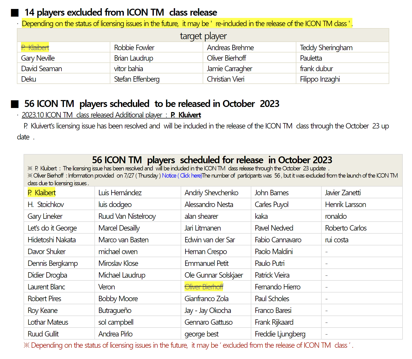 Server Hàn sắp tới sẽ có 1 bản cập nhật, trong đó một trong những thông tin quan trọng chính là việc cập nhật thêm 1 số ICON TM trong game. Trong đó, điều đáng chú ý là sự trở lại của Kluivert trong danh sách ICON TM dù trước đó tiền đạo Hà Lan nằm trong danh sách ICON không có mùa giải ICON TM khiến nhiều người chơi tiếc nuối khi vẫn đang nuôi hi vọng về một sự trở lại của tiền đạo từng làm mưa làm gió ở FO3.