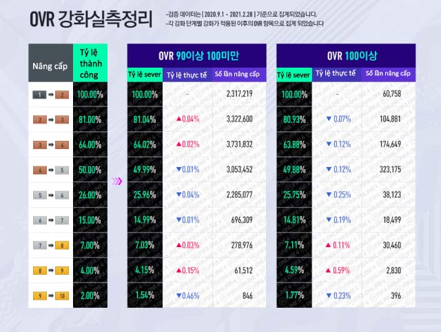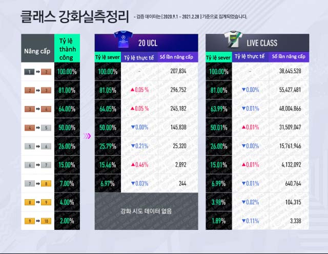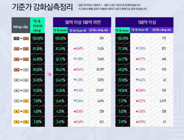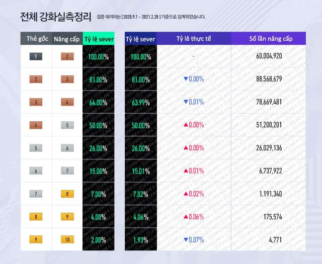 - Đây là bảng thống kê tỷ lệ nâng cấp của sever Hàn từ 9.1.2021 - 28.2.2021