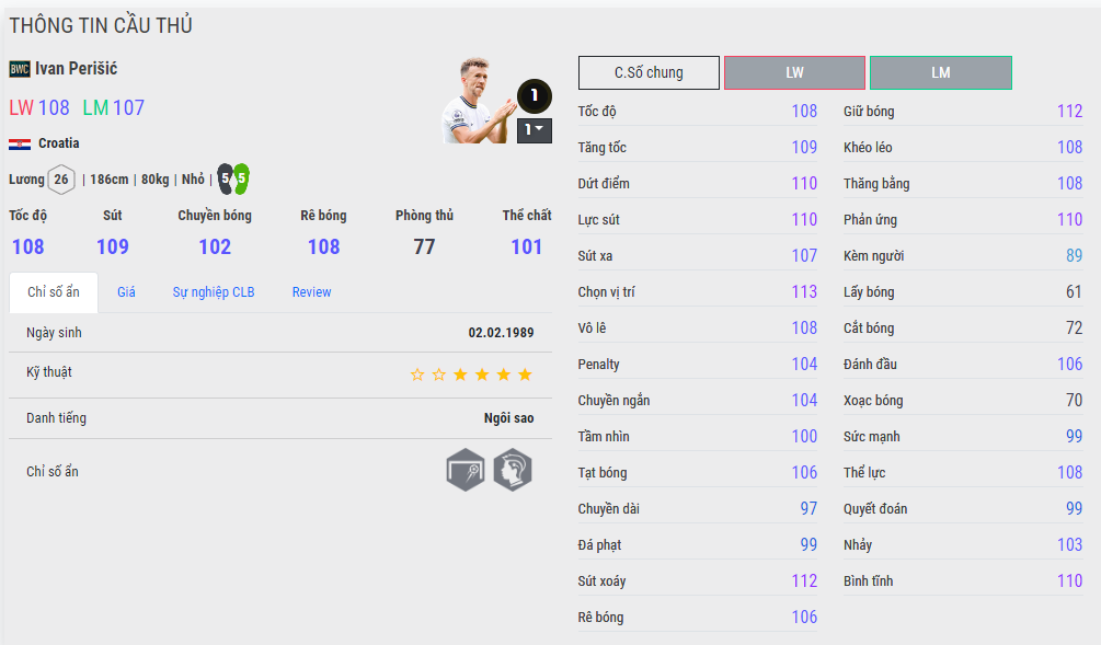 Điều đó giải thích tại sao những tiền đạo như Lewandowski, Ronaldo,...luôn được lựa chọn cho vị trí chơi cao nhất của nhiều HLV. Một trường hợp khá hay là của Ivan Perisic BWC, cầu thủ này bên Hàn được rất nhiều người đôn lên đá CF hay ST vì có chỉ số dứt điểm lên tới 110, hai chân 5/5 và cả chỉ số ấn sút xoáy... Điều chưa có tiền lệ trước đó với các mùa giải khác của Perisic.