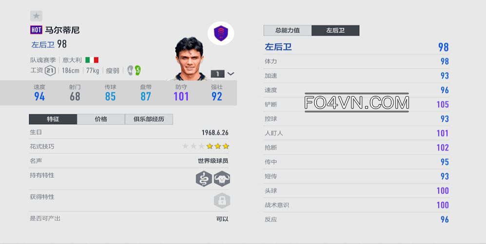 Đáng chú ý là Maldini mất đi chỉ số ẩn Lãnh Đạo, cứng như thép so với mùa TC