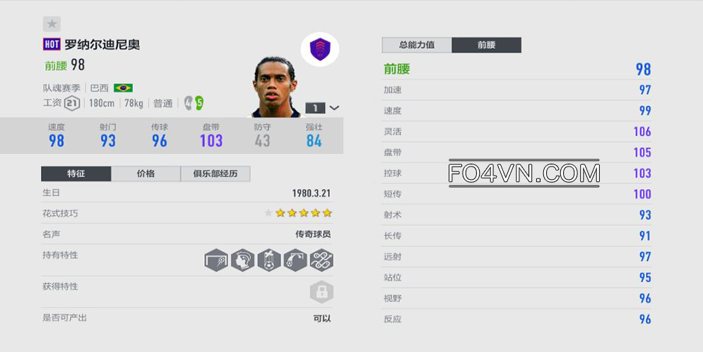 Phù thủy Ronaldinho với chỉ số tím lịm