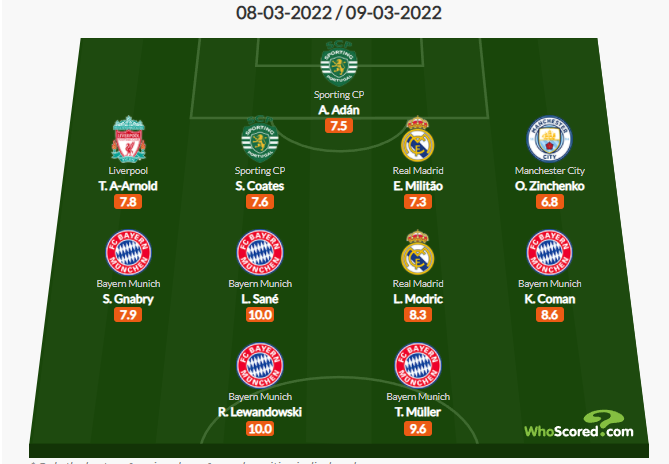 Đây là 11 cái tên được chấm điểm cao nhất cho các vị trí, tất nhiên trong danh sách này có những cái tên của Real chưa được kể đến như Benzema, Junior