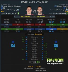 Nếu bạn là fan của bóng đá phòng ngự phản công, thì đây là cặp đôi bạn nên để ý qua. Và cũng là cặp đôi mà mọi tiền đạo trên thế giới đều phải e dè, kinh nghiệm của Godin, sức trẻ của Gimenez. Một già một trẻ vẫn đang cày ải đầy sức mạnh trên đấu trường C1 và Laliga. Trong game điểm trừ của cặp đôi này chính là chiều cao, khi mà cả hai không cao quá 1m86. Bù trừ lại là sức bật nhảy tốt. Nhưng chỉ số vẫn chỉ là những con số lừa dối trong Fo4. Nếu bóng sệt, không thành vấn đề. Nhưng bóng bổng thì bạn cần phải có kỹ năng phòng ngự thuộc hạng khá mới có thể vận dụng được cặp đôi của Atletico Madrid. Điểm mạnh nhất của họ là luôn ở nhà và giữ vị trí rất tốt với lối chơi tổ chức.