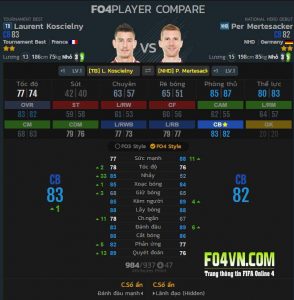 4 . Laurent Koscielny và Per MertesackerTừng một thời tung hoành ngang dọc trong FO3 với mùa giải wc6, Mertesacker thực sự là một con quái vật bởi tốc độ của anh là không hề chậm. Nhưng đó là câu chuyện của ngày xưa. Còn hiện tại trong game Mertersacker chỉ có mùa giải NHD là ổn. Nhưng nếu nhìn vào thể hình của anh thì có thể thấy tốc độ 76 không phải là con số quá thất vọng. Bù trừ cho anh là một Koscielny với sự bọc lót tuyệt vời. Điểm yếu của cây sào người Đức là dễ bị vằn sườn. Nhưng Kos sẽ sửa sai cho người đồng đội cực tốt. Nếu bạn là fan của Arsenal có lẽ đây là cặp đôi không nên bỏ qua. Bới khả năng không chiến cũng như ăn ý của cả hai.