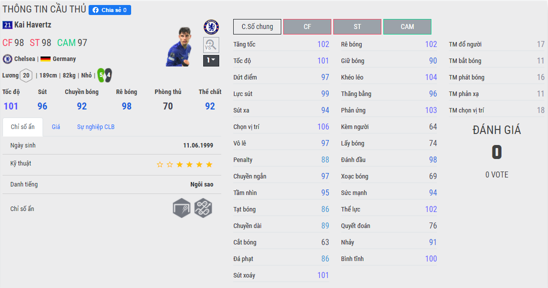 Tiền vệ tấn công người Đức của Chelsea là một chân sút cự phách trong chế độ GLXH với khả năng bắn phá cực tốt từ tuyến hai, không rõ có đang được buff ảo hay không ? dù không có chỉ số sút xa nhưng Havertz rất tích cực tung ra các cú sút từ ngoài vòng cấm.