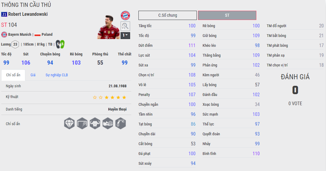 Tiền đạo người Ba Lan vẫn là ST uy tín nhất của tựa game trong 2 năm trở lại đây, xuyên suốt từ 19UCL cho đến 21UCL, dự đoán đây sẽ là một mùa giải còn hay hơn 20UCL của Lewandowski
