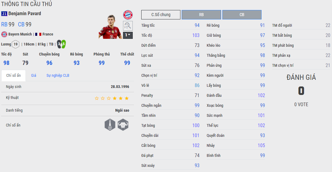 Hậu vệ người Pháp hiện chơi cho Bayern có được tốc độ tốt nhất trong các mùa giải của anh, và đây chính là một điểm ưu tiên số một trong chế độ GLXH với các hậu vệ, không khó hiểu khi Pavard có được tỷ lệ tackle bóng cao nhất với 81% thành công và tỷ lệ cứu thua xuất sắc.